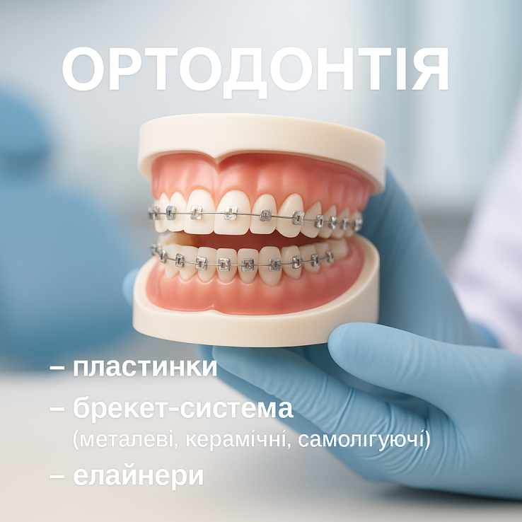 Ми пропонуємо точну діагностику, художню реставрацію та естетичну стоматологію, протезування на імплантах з використанням високоякісних матеріалів, ортодонтичне лікування (брекети, елайнери), хірургію без болю з можливістю седації.